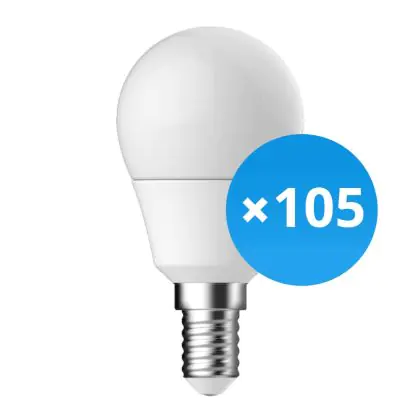 | Fabrikantnaam | Bulk 105x LED Lamp E14 Ball 2.9W, 250lm, 2700K | Replaces 25W | |