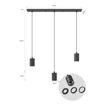 Beschrijving Calex Retro Pendelarmatuur Cordset Rechthoekig Metaal Zwart |incl. kabel 2 Meter - Geschikt voor 3xE27