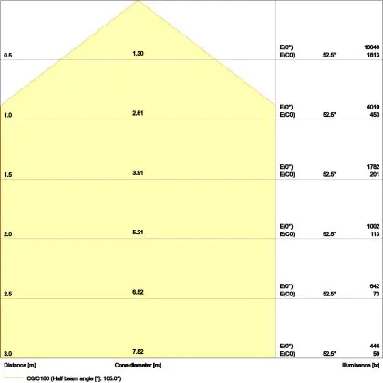 Dit armatuur heeft de kleurtemperatuur 6500K - Daglicht Wit. Wat houdt dit eigenlijk in? Lichtkleuren bepalen de sfeer in een ruimte. Zo is warm wit (3000K) geschikt voor algemene ruimtes en stallen, koel wit (4000K) voor stallen, magazijnen, loodsen en productiehallen, en daglicht wit (6500K) voor productiehallen (detailwerk). Bepaalde omgevingen kunnen verlicht worden met meerdere lichtkleuren. Dit heeft met name te maken met de hoeveelheid natuurlijk daglicht in de ruimte; hoe minder dit is, hoe koeler de lichtkleur keuze. Het licht van deze LED high bay wordt verspreid in een stralingshoek van 110°.