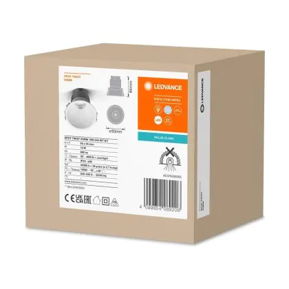 Beschrijving Ledvance LED Spot Twist Pro Aluminium Wit Reflector 10W 800lm 30D - 840 Koel Wit | 93mm - Zaagmaat 85mm - IP20