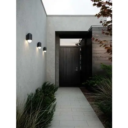 Ronde vormen en een zacht neerwaarts licht, dat is precies waar de Nordlux Heka buitenlamp voor staat. Het IP54 armatuur zorgt dat je veilig de toegangspunten naar je woning, de oprit of een andere buitenruimte kunt verlichten. In dit geval met een zwarte aluminium behuizing en een glazen optische afdekking.