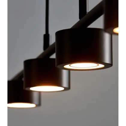 Een slanke maar moderne pendellamp, dat is de Nordlux Clyde. Het zwart metalen armatuur is 115 cm lang met hierover verdeeld 4 lampkoppen. Deze hang je bij installatie op op de hoogte die jij wenst boven je eetkamer- of keukentafel. En dat is niet het enige flexibele aan deze pendellamp ...