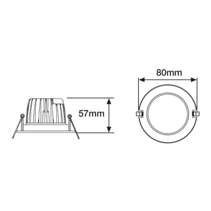 Op zoek naar een inbouwspot voor buitengebruik? Dan speelt de IP waarde van het armatuur een belangrijke rol. Dit cijfer geeft aan in hoeverre het product stof- en waterdicht is. Wanneer je een inbouwspot buiten wil plaatsen, bijvoorbeeld onder een carport of overkapping, dan raden we een IP waarde van tenminste 44 aan. De IP waarde van deze Noxion inbouwspot is: IP65 - Stof- en Waterdicht. Verder is de zaagmaat van belang. Vooral als er van tevoren een gat in een plafond moet worden gemaakt. De diameter van deze LED spot is: 80mm en de hoogte bedraagt: 57mm. Het plaatsen van dit inbouwarmatuur is met name vanwege de twee sterke rvs klemmen eenvoudig en kan rechtstreeks op de netstroom (230V).