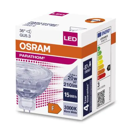 Beschrijving Osram Parathom LED Spot GU5.3 MR16 3W 230lm 36D - 830 Warm Wit | Vervangt 20W