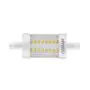 Deze R7s LED lamp is de efficiënte en energiezuinige LED-vervanger van R7s halogeenlampen. Wat opvalt aan deze buisvormige LED verlichting is de lampvoet aan beide uiteinden. Hiermee klik je de lamp vast in een geschikt armatuur. R7s LED staaflampen beschikken over een brede stralingshoek (gradenbundel), waardoor het licht meerdere kanten op schijnt. Dat is onder andere ideaal voor bouwplaatsen, sportvelden of (hoge) wand- en plafondarmaturen. R7s LED lampen met een extra warm witte kleurtemperatuur (2700K) kom je ook tegen in design armaturen voor woonkamers en slaapkamers. De kleurtemperatuur van deze LED lamp is: 2700K - Zeer Warm Wit.