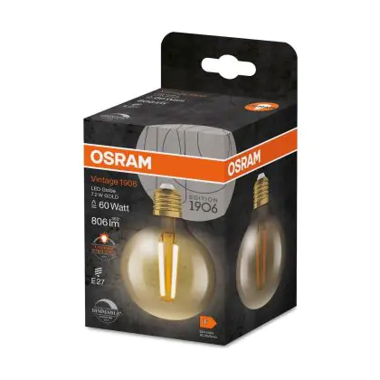 Beschrijving Osram Vintage 1906 LED E27 Globe Filament Goud 7.2W 806lm - 824 Zeer Warm Wit | Vervangt 60W