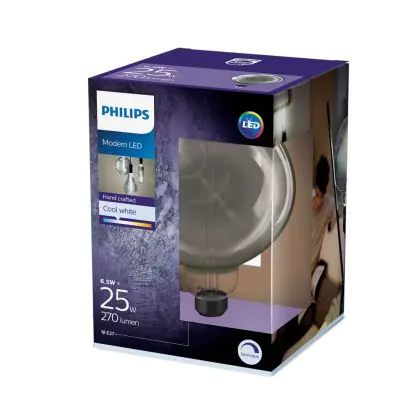 Beschrijving Philips Classic LED Globe E27 200mm Filament Smoke 6.5W 200lm - 818 Zeer Warm Wit | Dimbaar - Vervangt 20W