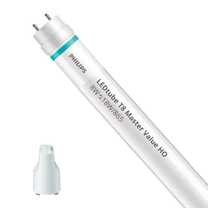 Beschrijving Philips LED Buis T8 MASTER Value (EM/Mains) High Output 8W 1050lm - 865 Daglicht | 60cm - Vervangt 18W