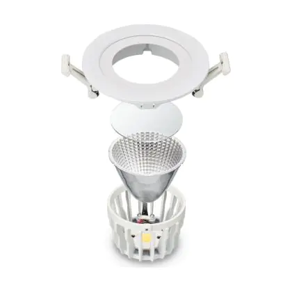De lichtopbrengst en de gradenbundel spelen een grote rol. Zo geeft de lichtopbrengst van 2800 Lumen in combinatie met de 36° stralingshoek deze inbouwspot een specifieke toepassing. Kort samengevat is een lichtintensiteit van maximaal 400 Lumen ideaal voor accentverlichting, terwijl hogere waardes goed gebruikt kunnen worden als basisverlichting. Over het algemeen geldt: hoe breder de gradenbundel, hoe geschikter deze is door basisverlichting. Dit komt doordat het licht over een groter oppervlak wordt verspreid. Smallere gradenbundels (tot 40°) kunnen echter bij hoge plafonds ook goed tot hun recht komen als algemene verlichting.